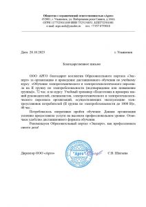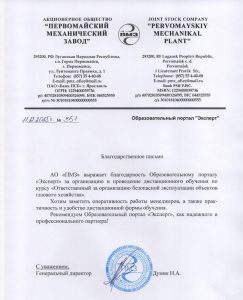 Благодарственные письма компании Эксперт в Мелитополе