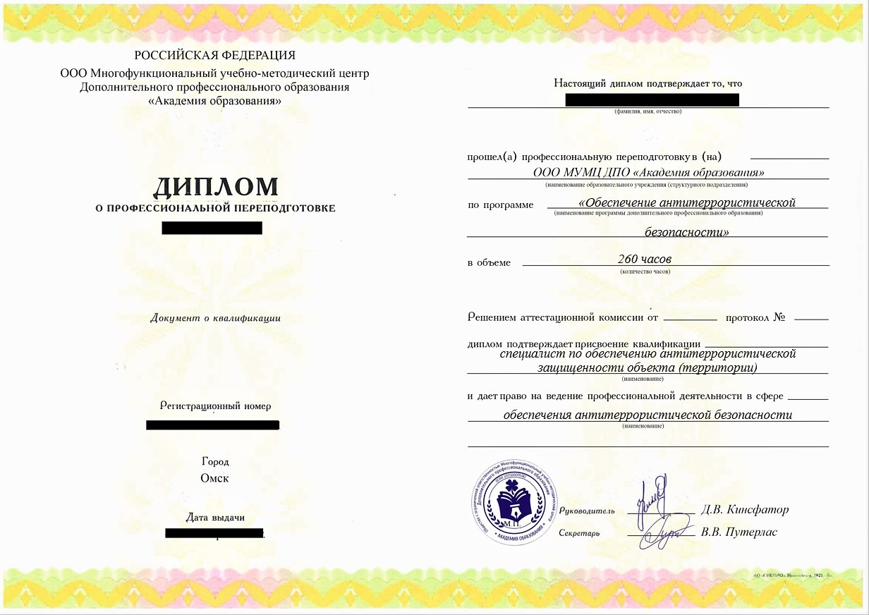 • Диплом о профессиональной переподготовке установленного образца. Срок действия: бессрочно