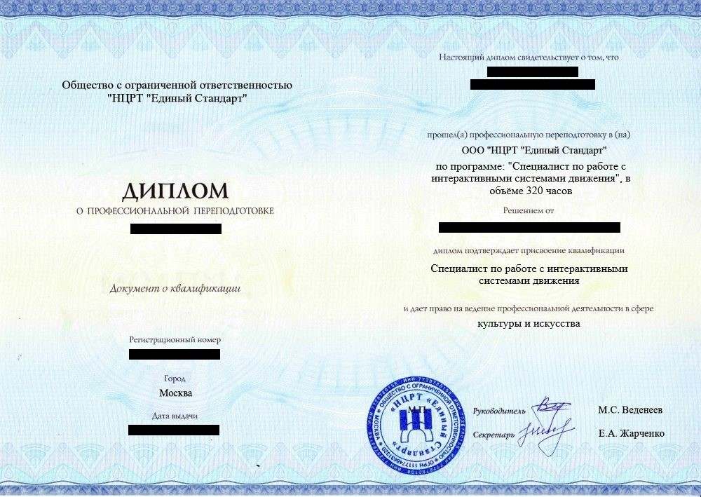 «Специалист по работе с интерактивными системами движения»